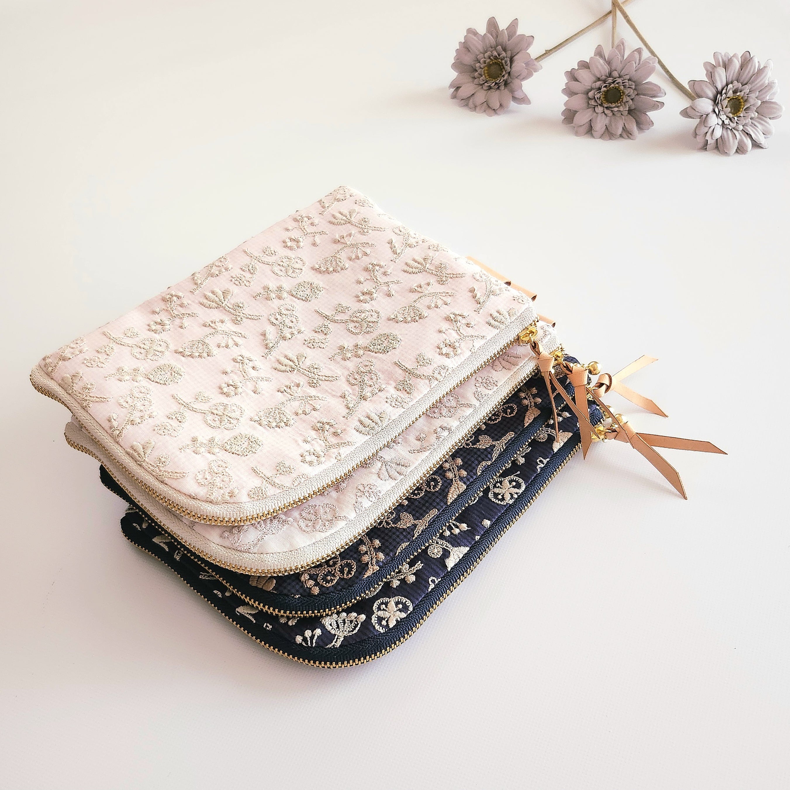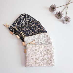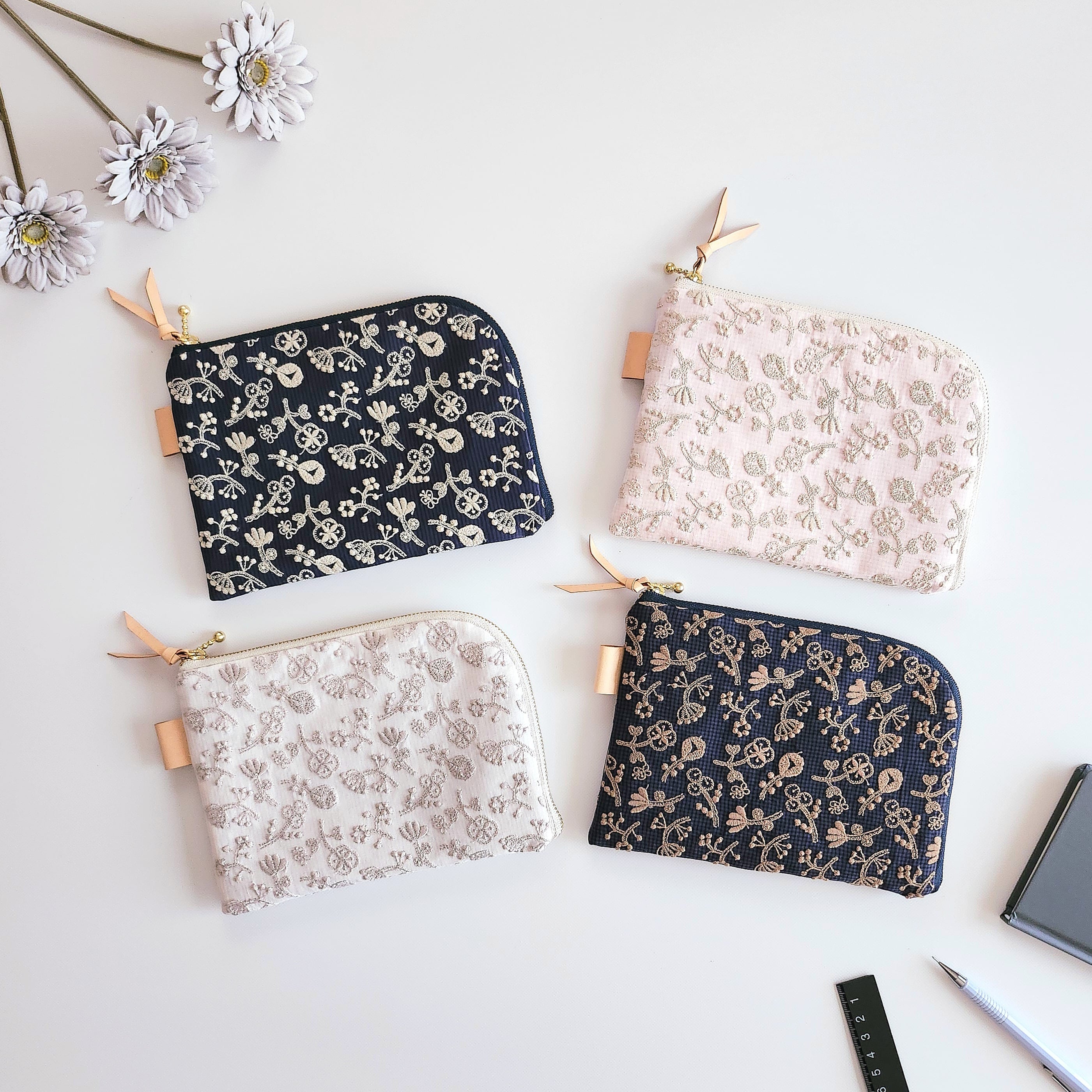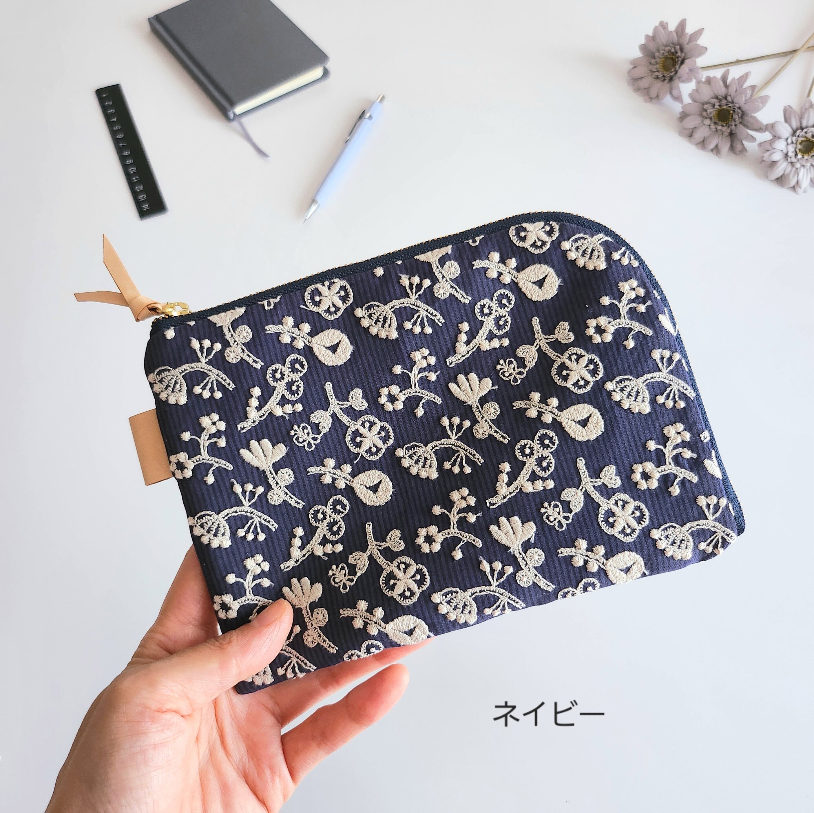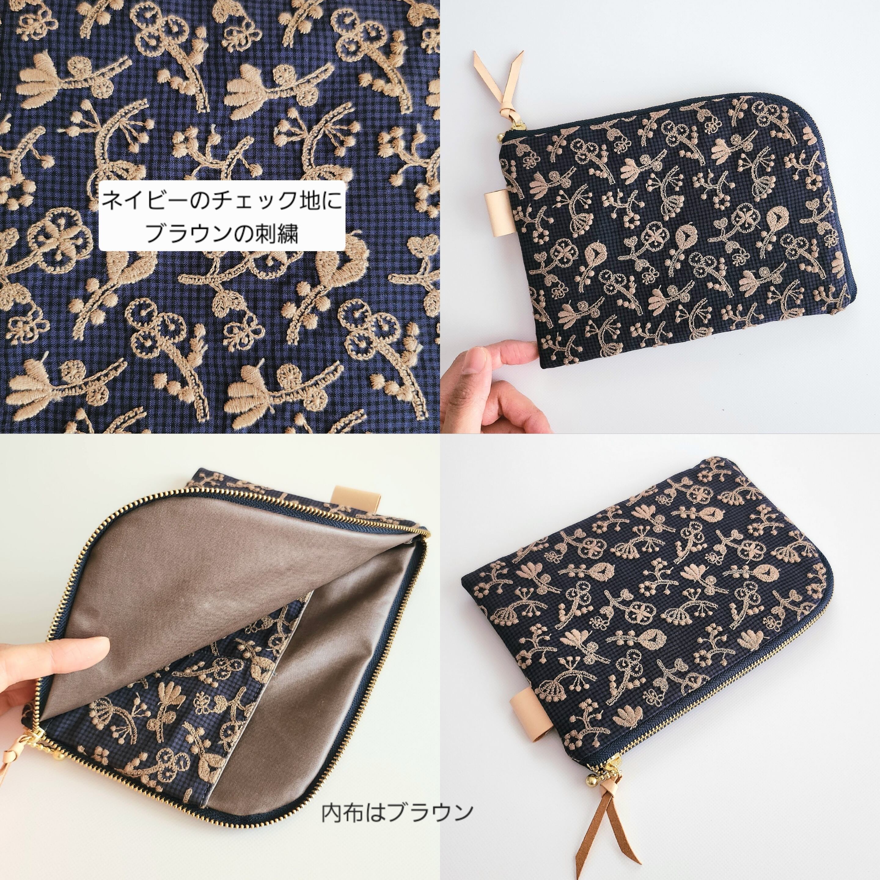 ミナペルホネン×check&stripeのL字ファスナーポーチ│母子手帳ケース│通帳ケース│フラットポーチ ネイビー ブラウン