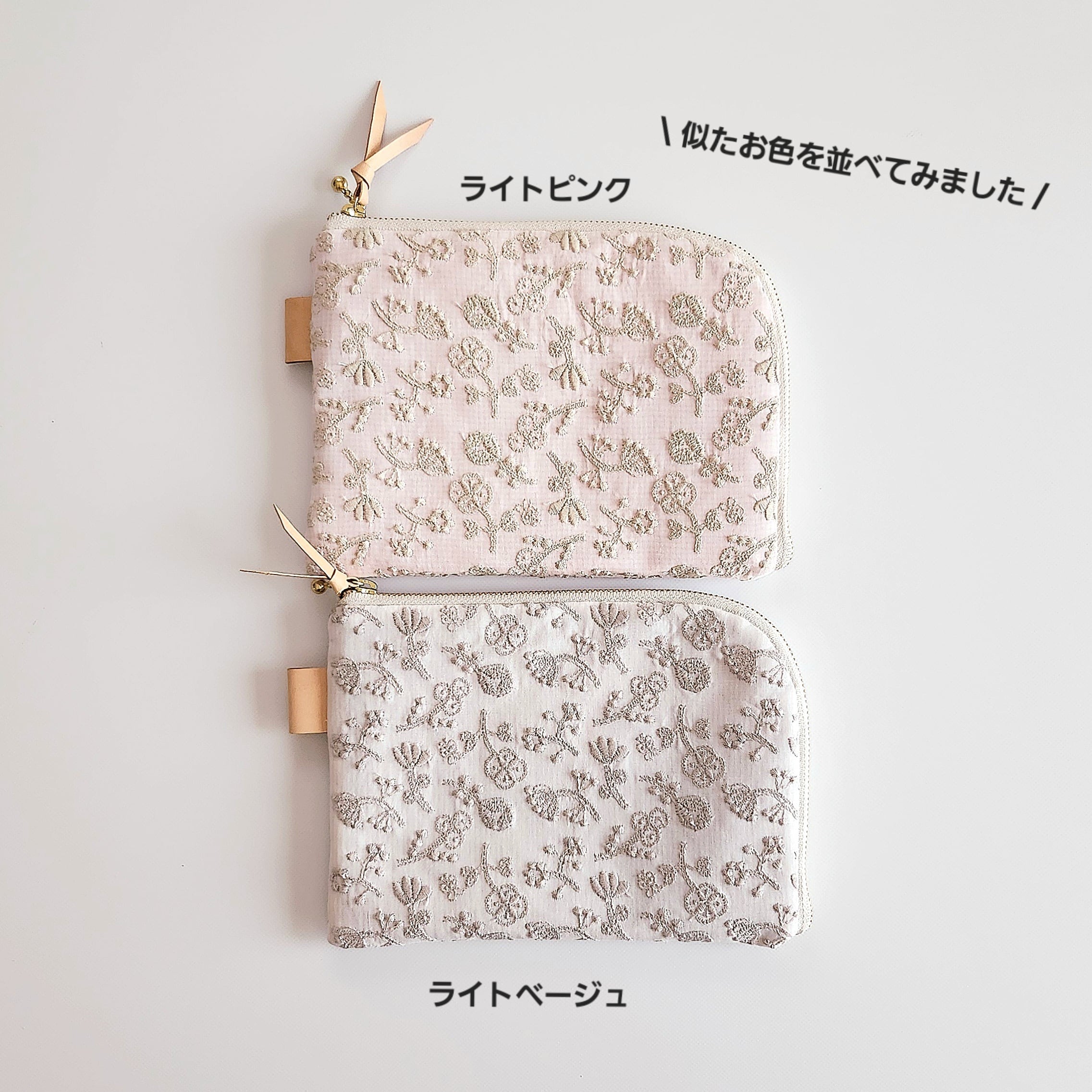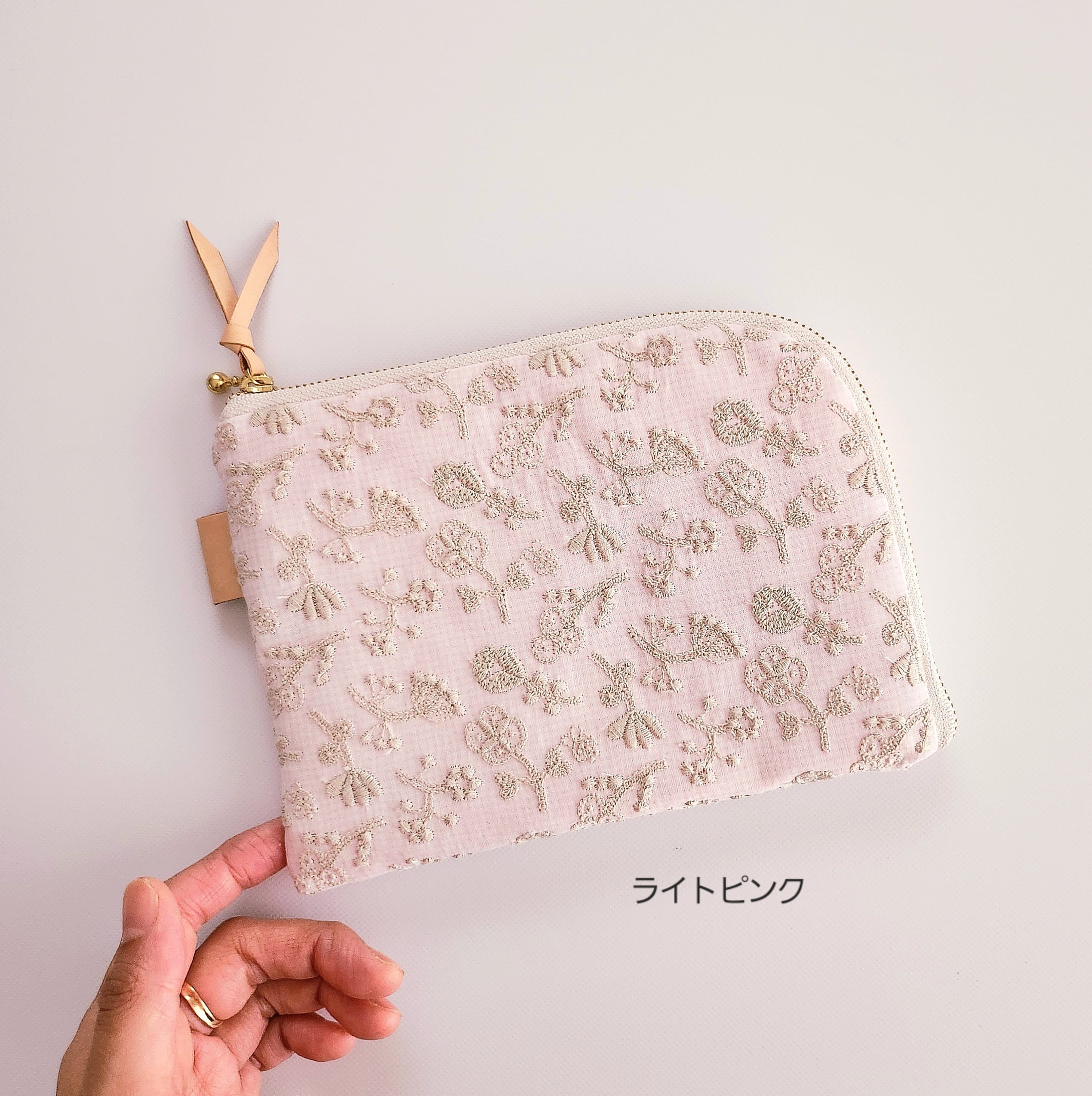 パウダーピンクのチェック地に、ライトベージュの刺繍です。