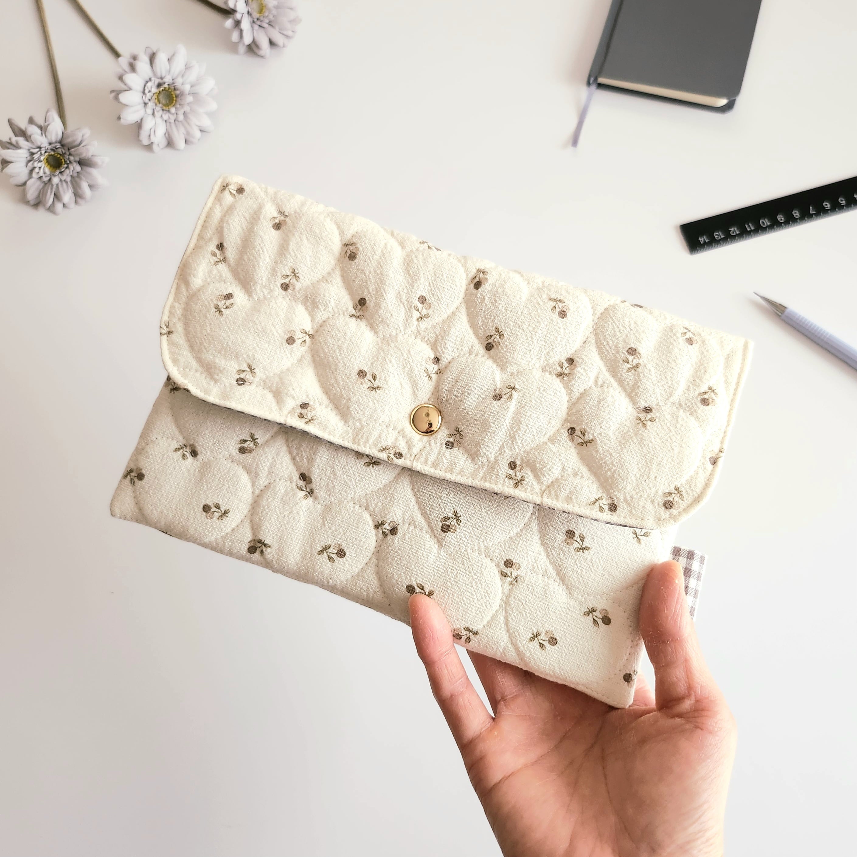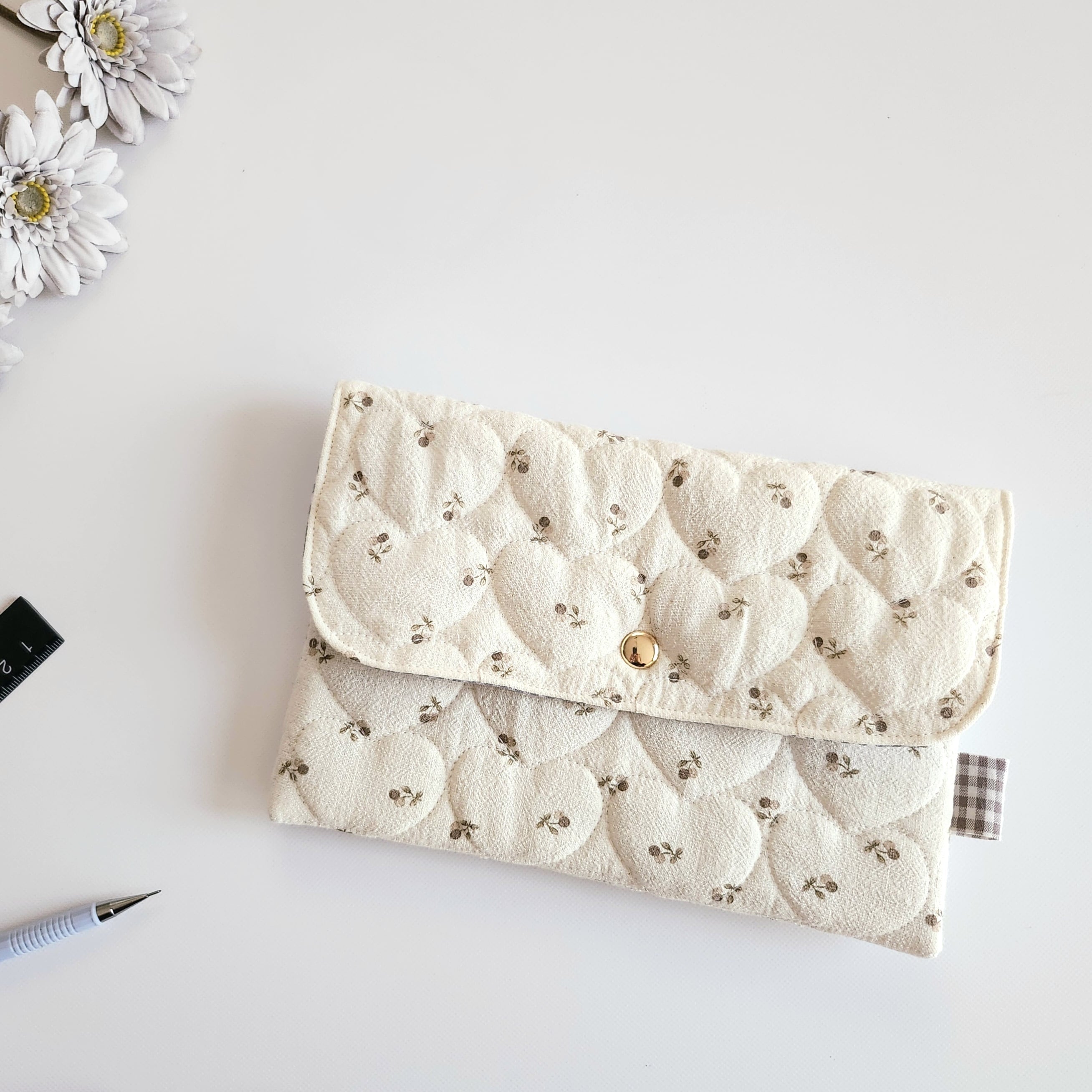 さくらんぼハートキルトの母子手帳ケース/マルチケース/通帳ケース/パスポートケース ヌビキルト 出産祝い