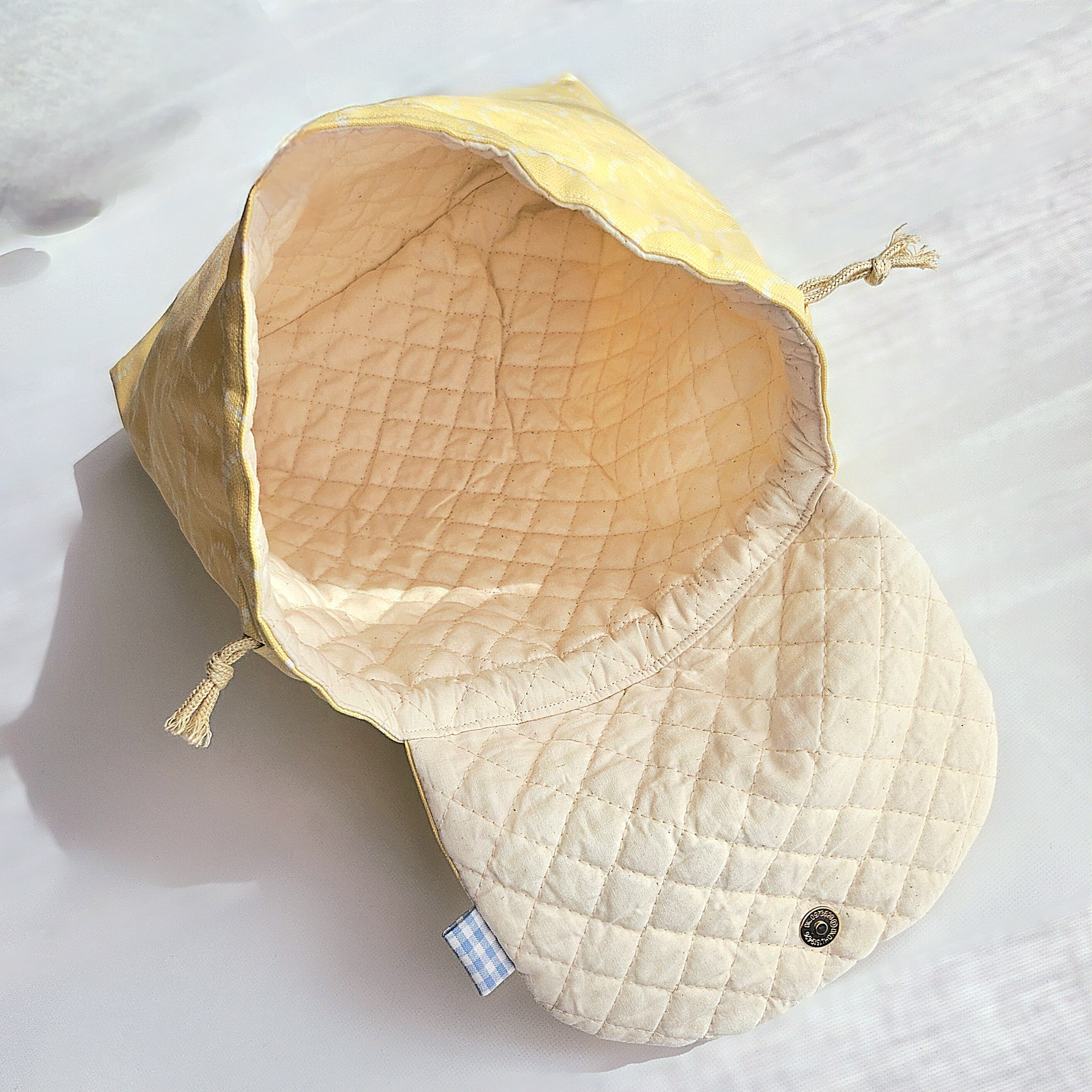 裏地にはキナリのキルティング地を使用してフワフワな仕上がりです。